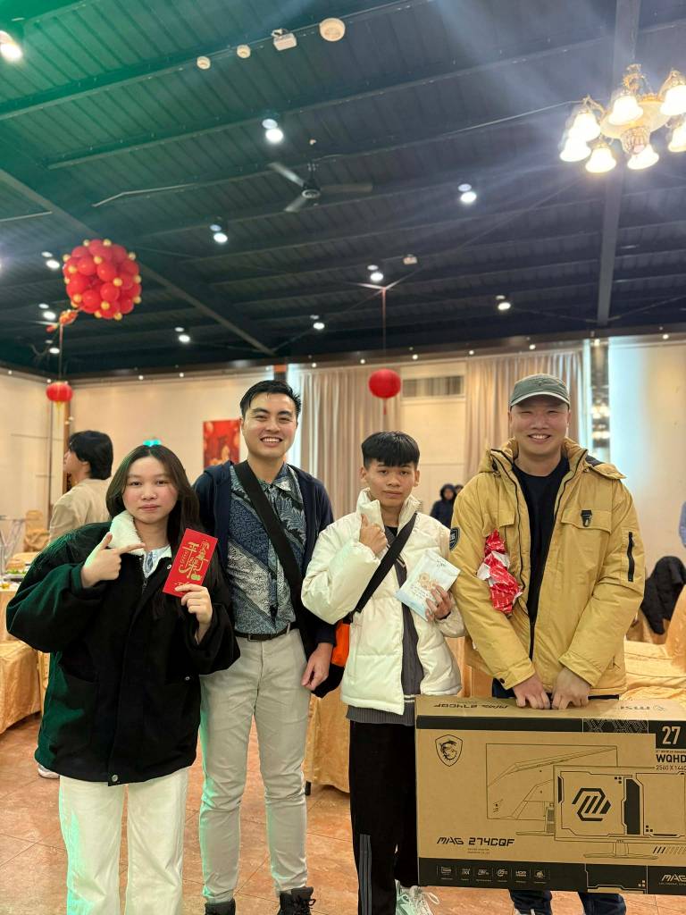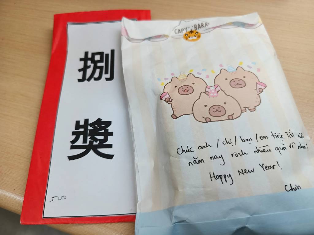 Cuối cùng thì học kỳ đầu tiên tại Đại học Kỵ Nam ở Đài Loan cũng đã kết thúc, và chính thức bước vào kỳ nghỉ đông. Tối nay mình tham dự tiệc chúc mừng năm mới do nhà trường tổ chức, có một số tiết mục biểu diễn và hoạt động phát lì xì. Mình cũng nhận được món quà do bạn Việt Nam chuẩn bị cho mọi người.